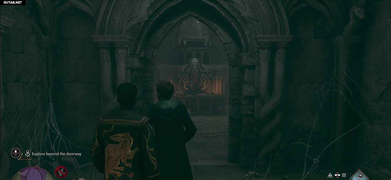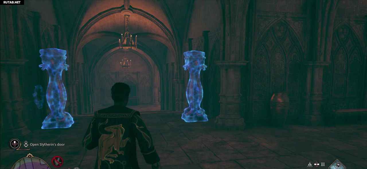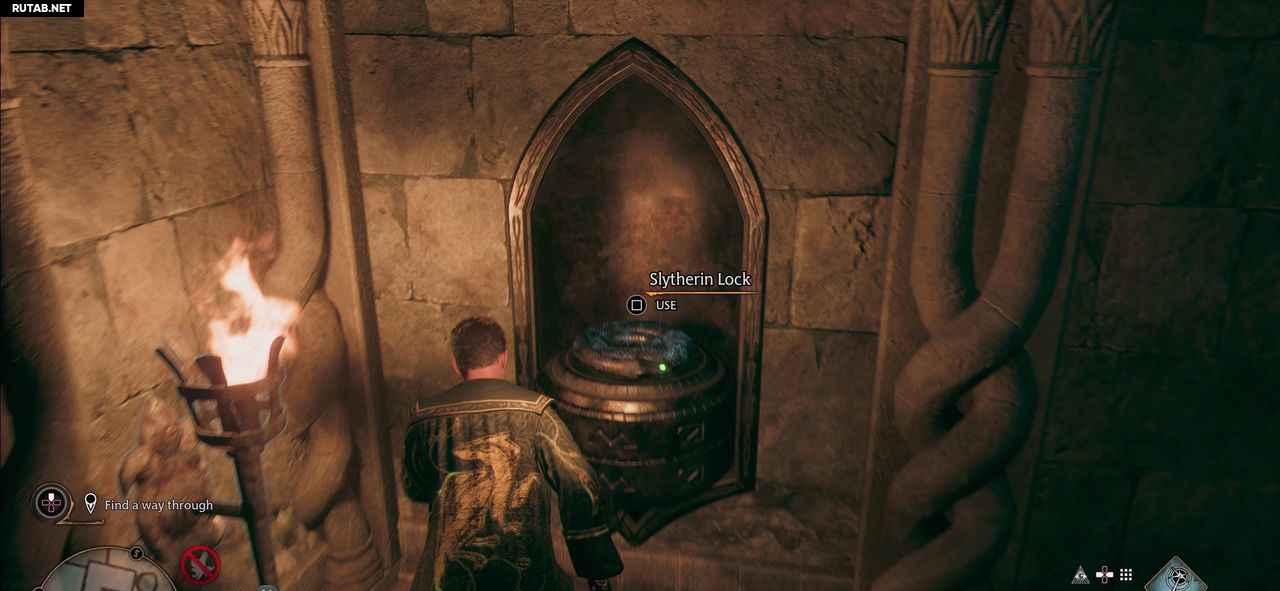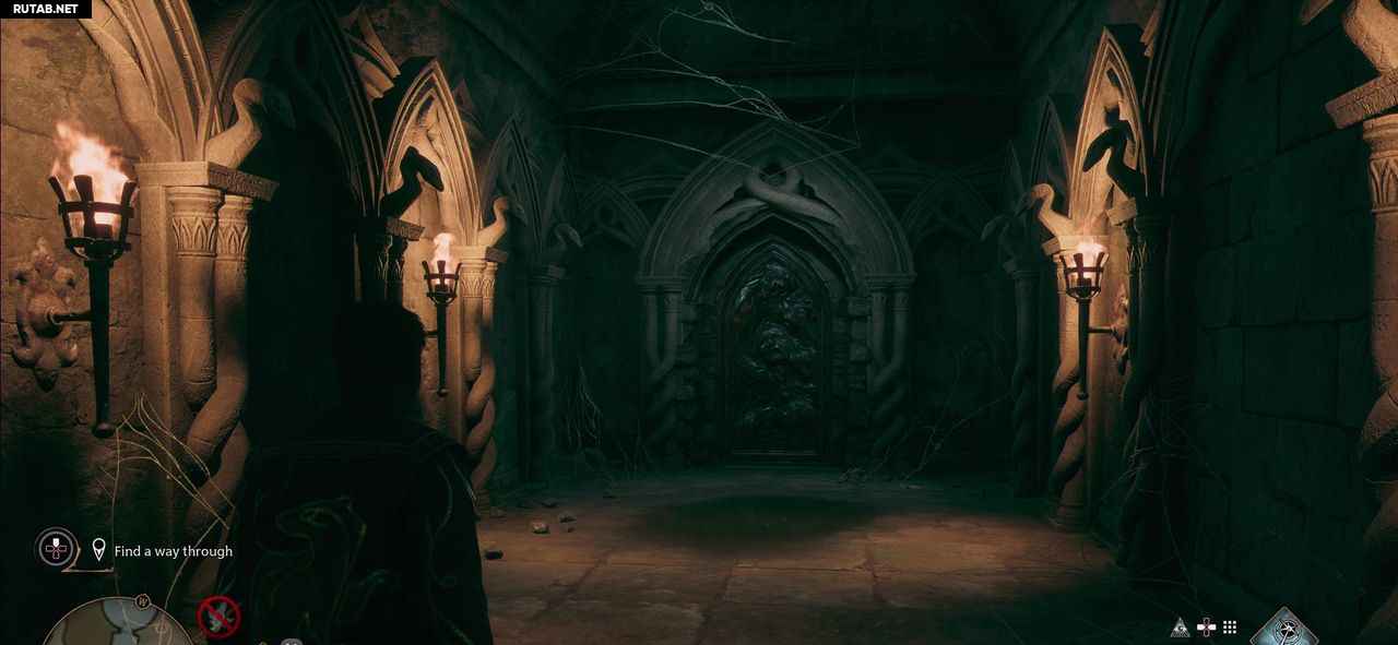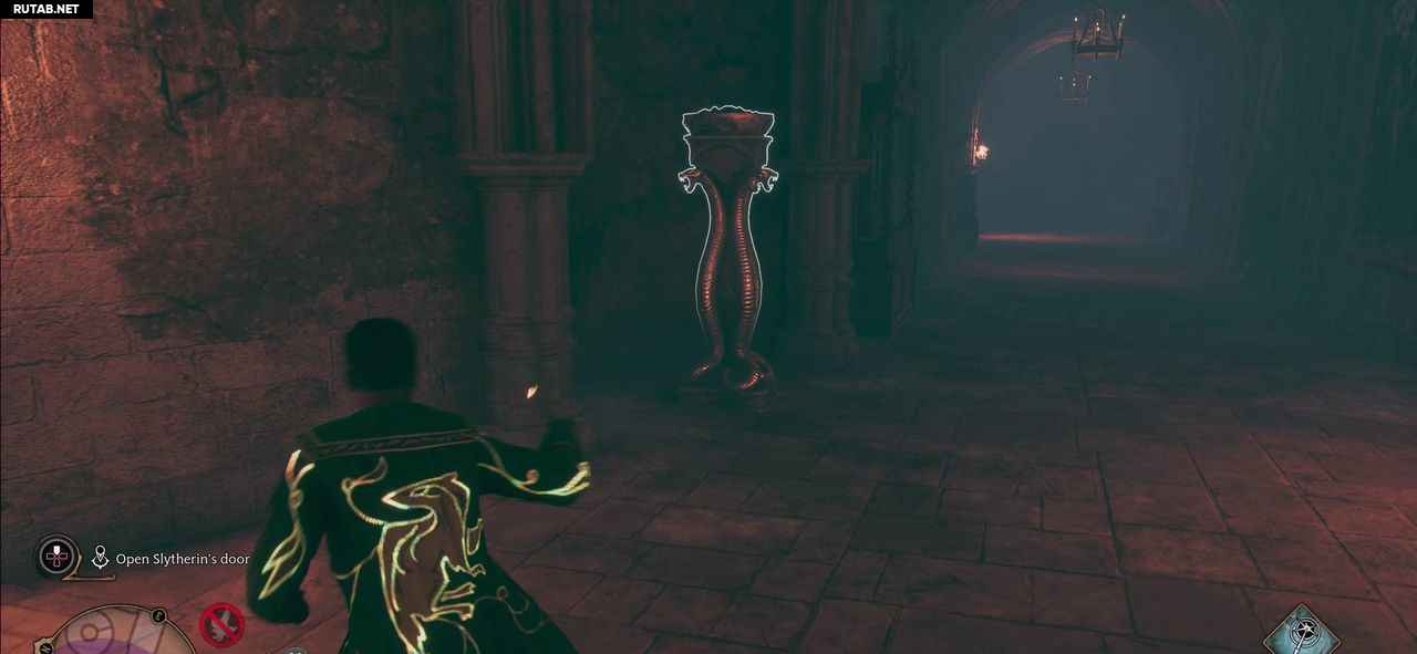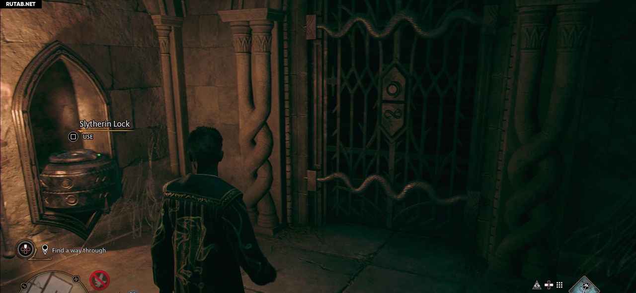 Пройдите дверь и следуйте по пути, вы найдете третий замок Слизерин, здесь вы можете ввести символы, которые вы записали на второй двери.
