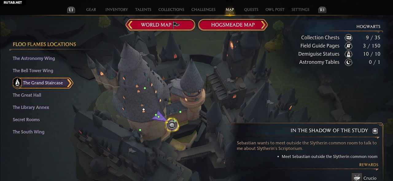 Информация о миссии: Себастьян хочет встретиться возле гостиной Слизерина, чтобы поговорить со мной о скриптории Слизерина.