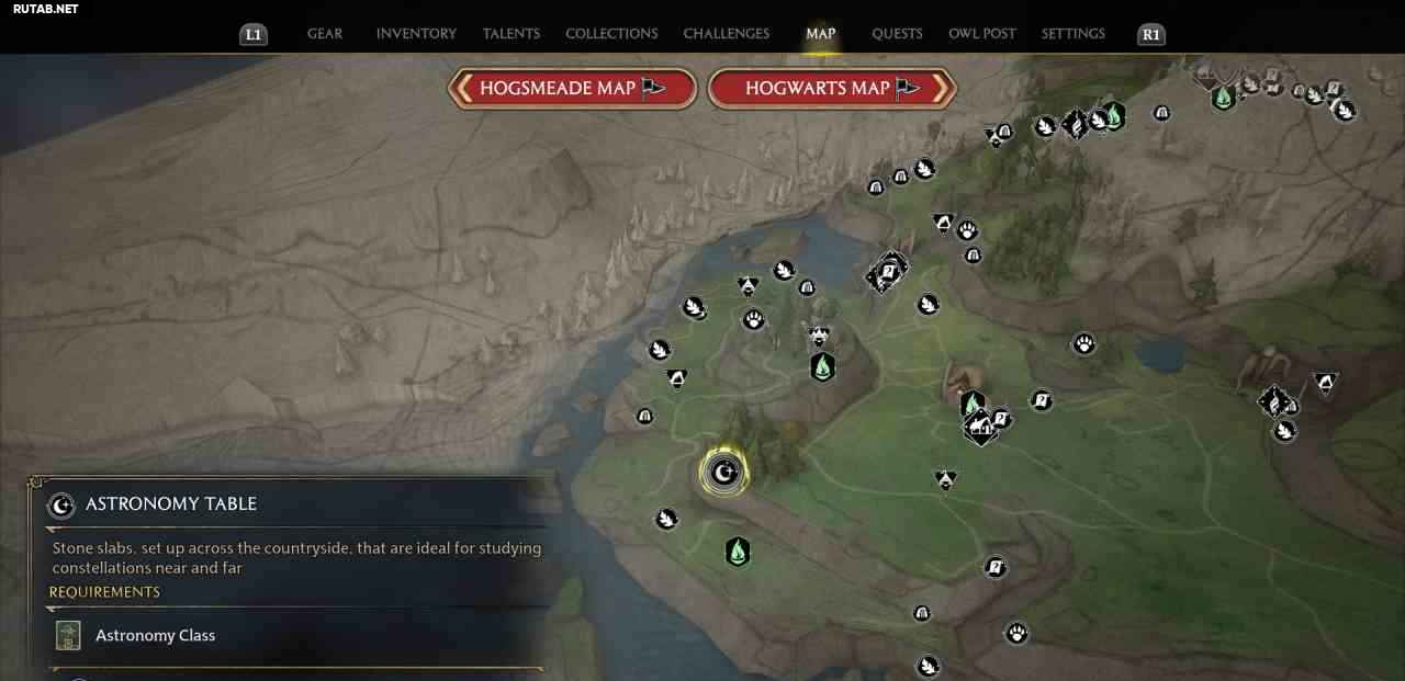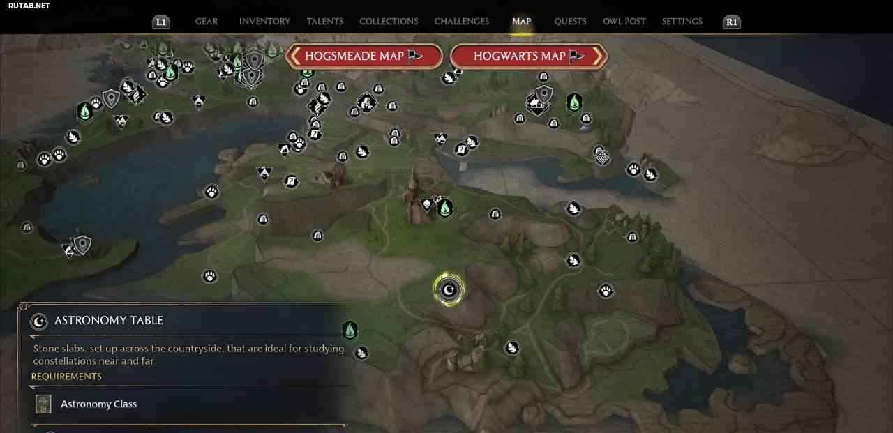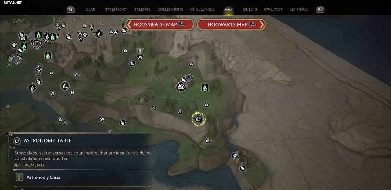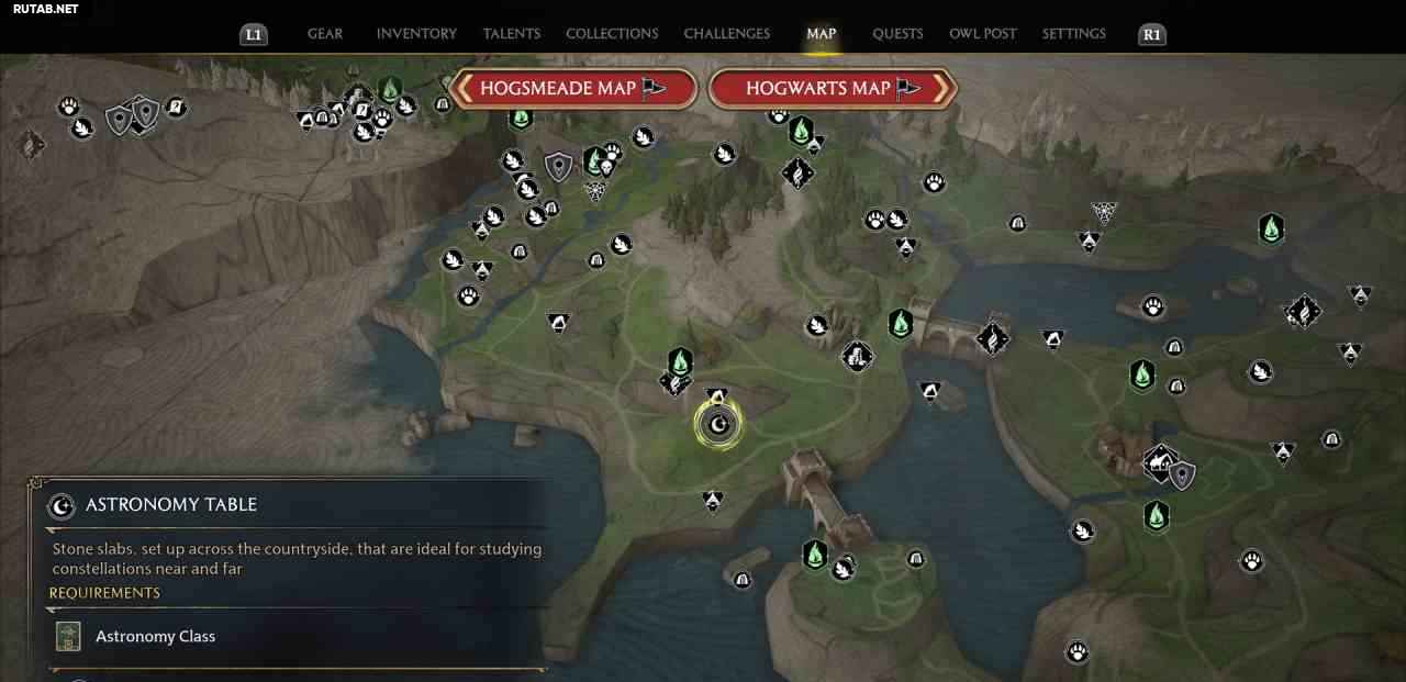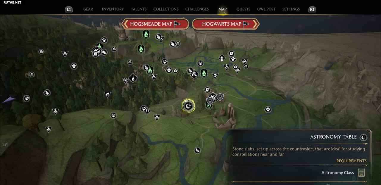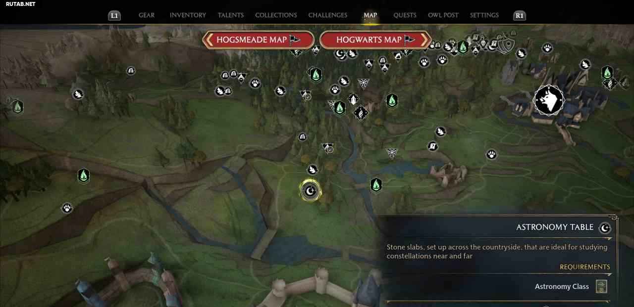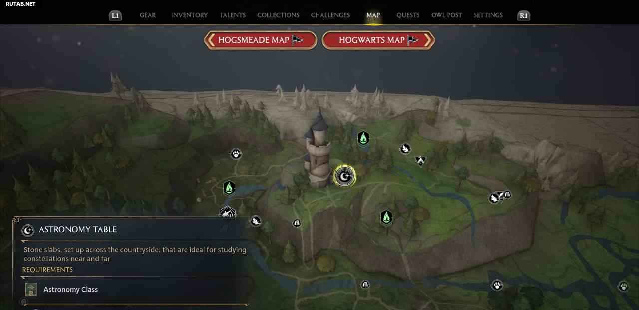 Примечание: Вы можете активировать астрономический стол только ночью. Вам также НУЖЕН астрономический стол в замке Хогвартс, чтобы получить все части снаряжения.