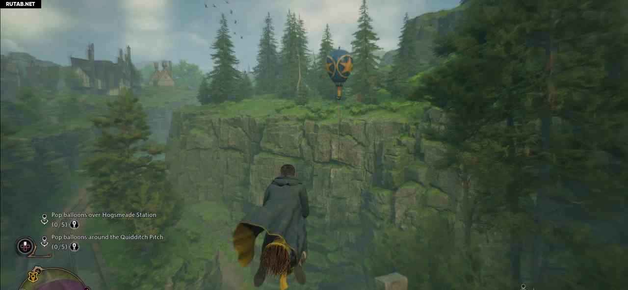 Следуйте по маркеру квеста и летите на своей метле к Станции Хогсмид и пролетайте там через все пять воздушных шаров.