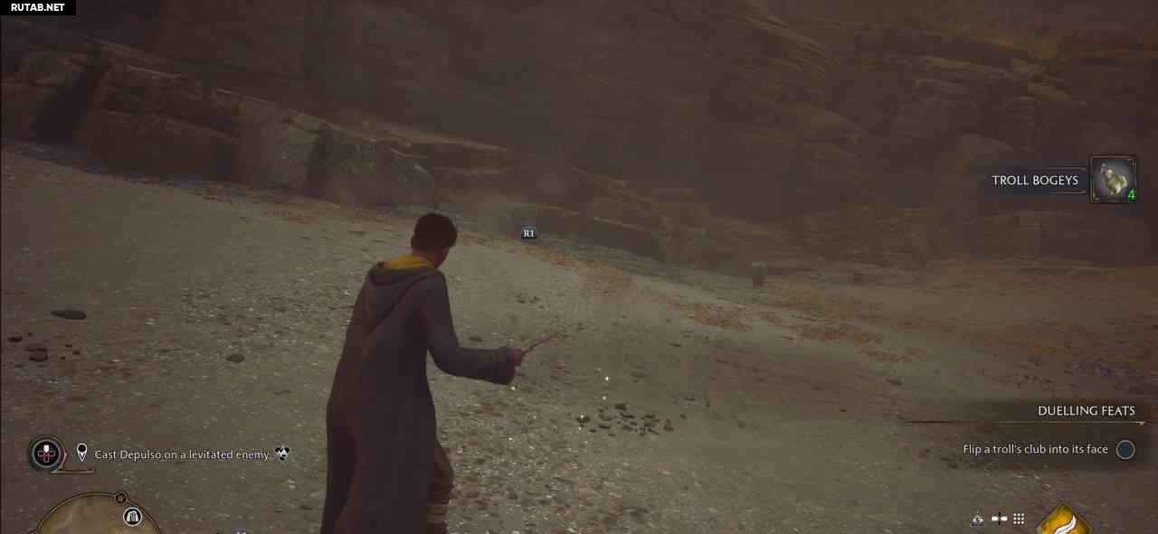 Для этого кастуйте Левиосо на маленького врага, чтобы он парил в воздухе, затем кастуйте на него Депульсо. Если вы победили тролля сверху, просто идите в ближайший замок, там есть несколько врагов, где вы можете это сделать.