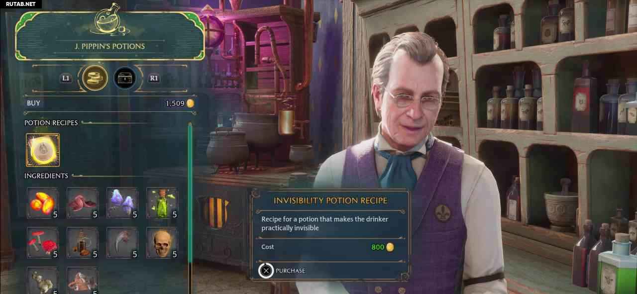 Зелье невидимости можно купить в магазине «Зелья Джея Пепина» в Хогсмиде. Вы можете купить зелье напрямую или купить рецепт и сварить его самостоятельно. Чуть дороже, но все равно оно пригодится для трофея