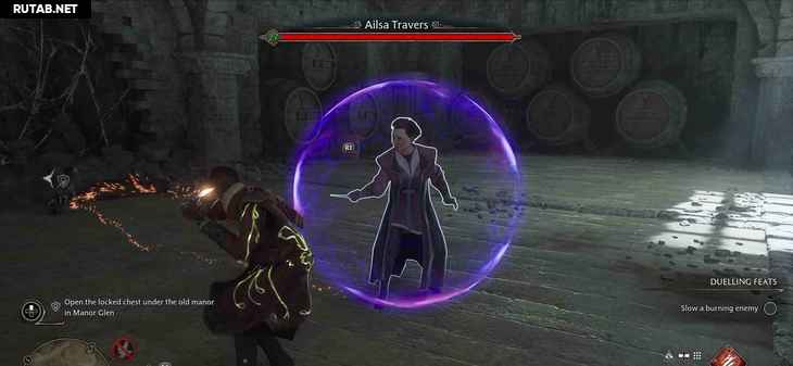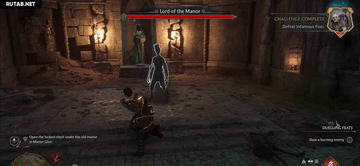 В подвале старого поместья на мысе Вест-Мэнор (содержит двух печально известных противников Эйлсу Трэверс и Лорда поместья). Вы автоматически столкнетесь с этим врагом на пути к побочному заданию: Сокровища из проклятой гробницы. Есть два способа спуститься вниз. Первый вариант — войти внутрь поместья и спуститься по лестнице, затем открыть дверной замок 3-го уровня (требуется найти 22 статуэтки демимаски, чтобы открыть замки 3-го уровня). Если вы еще не можете открыть замки 3-го уровня, второй вариант — применить Инсендио к статуе прямо к северу от мыса Вест-Мэнор. Затем статуя поворачивается, и вы можете войти внутрь нее, что приведет вас в подвал. На скриншотах ниже показан второй путь со статуей, которую вы можете использовать.