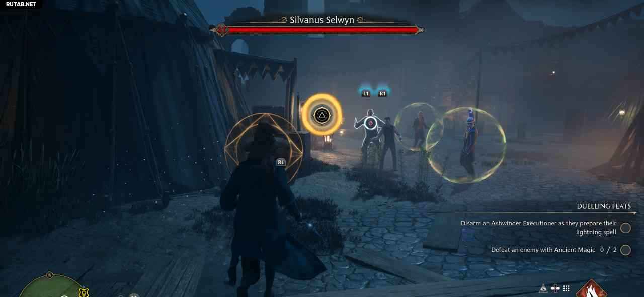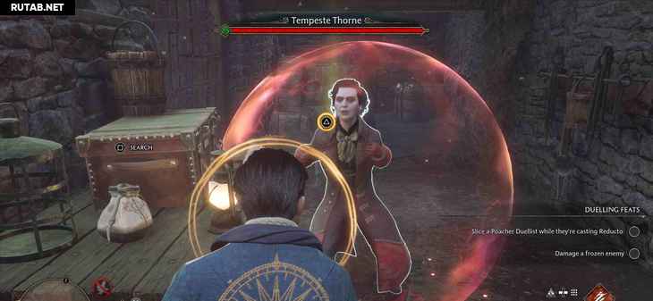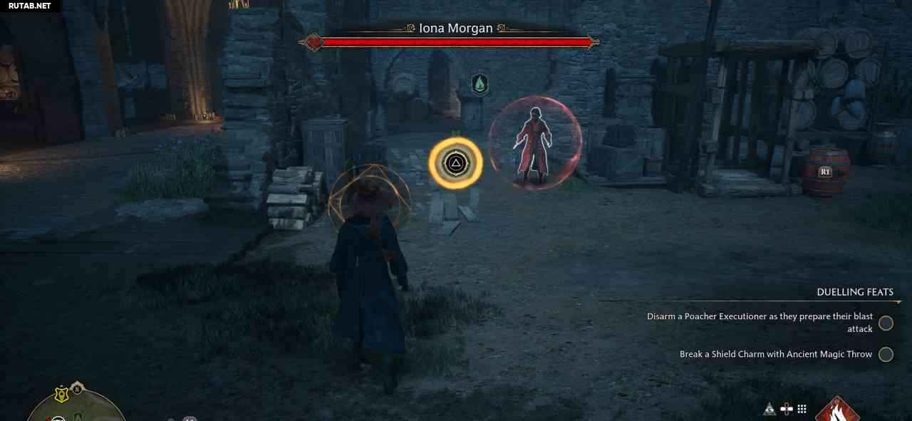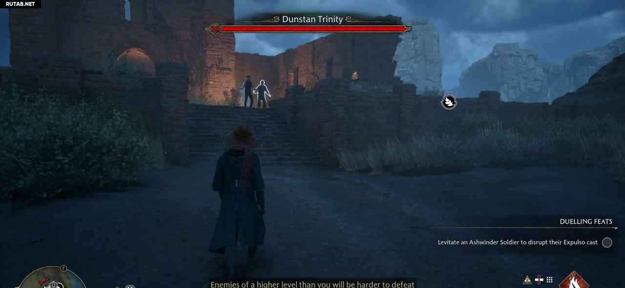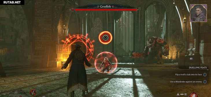 Босс Пергит во время побочного квеста: Сказка о Роуланде Дубсе, в районе Северный Хогвартс > Руины Корроу. Квест начинается в Хогвартсе -> Астрономическое крыло -> Двор трансфигурации (доступен после основного квеста: Шлем Урткота).