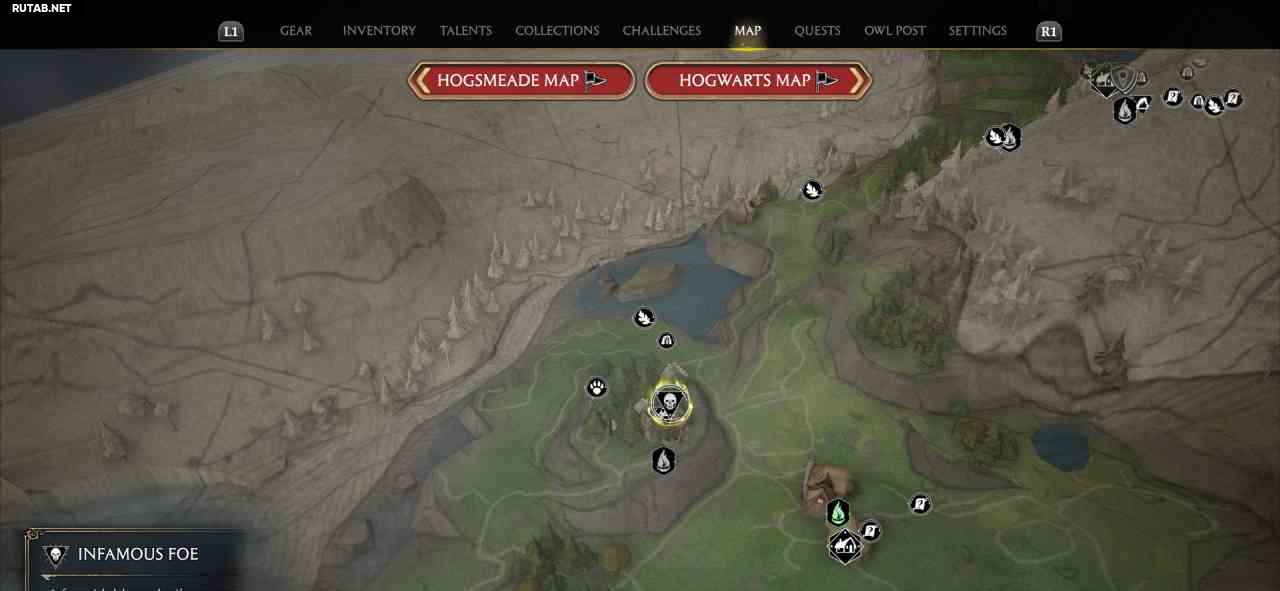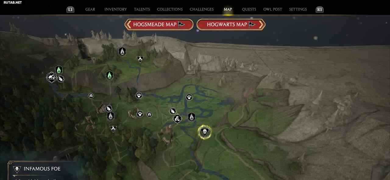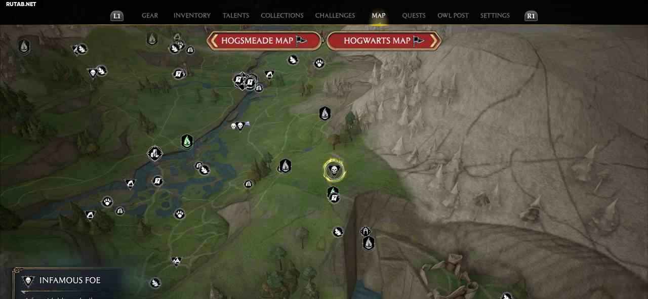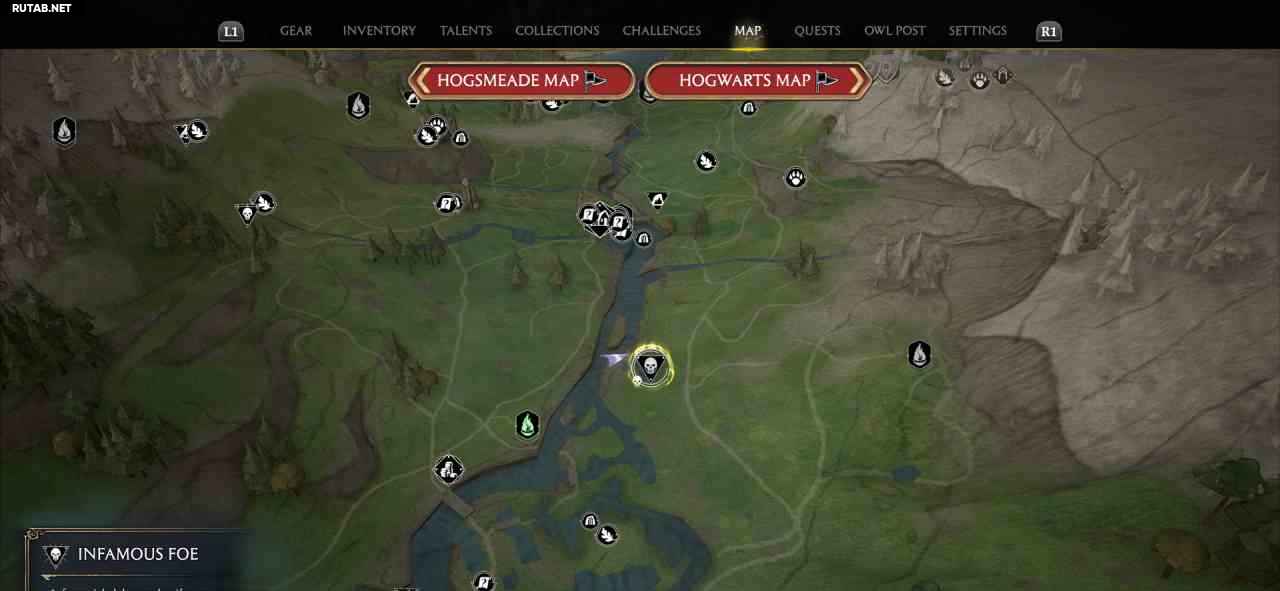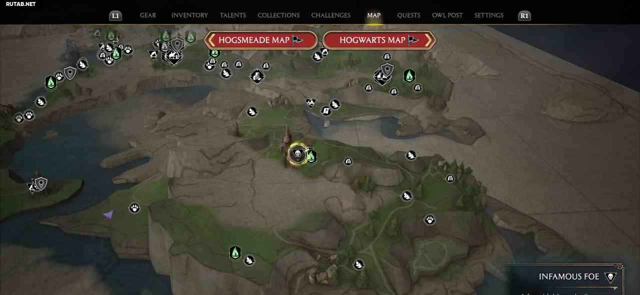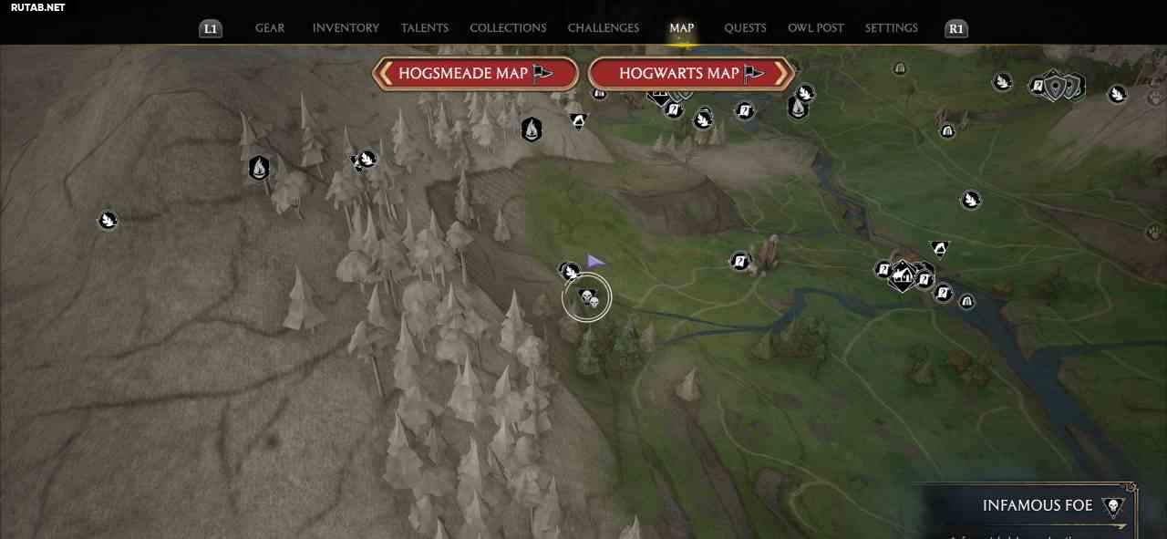 Находится в открытом мире, на востоке долины Хогсмид в замке с кучей врагов. Ворота будут закрыты, но вы можете влететь туда с помощью летающей метлы.
