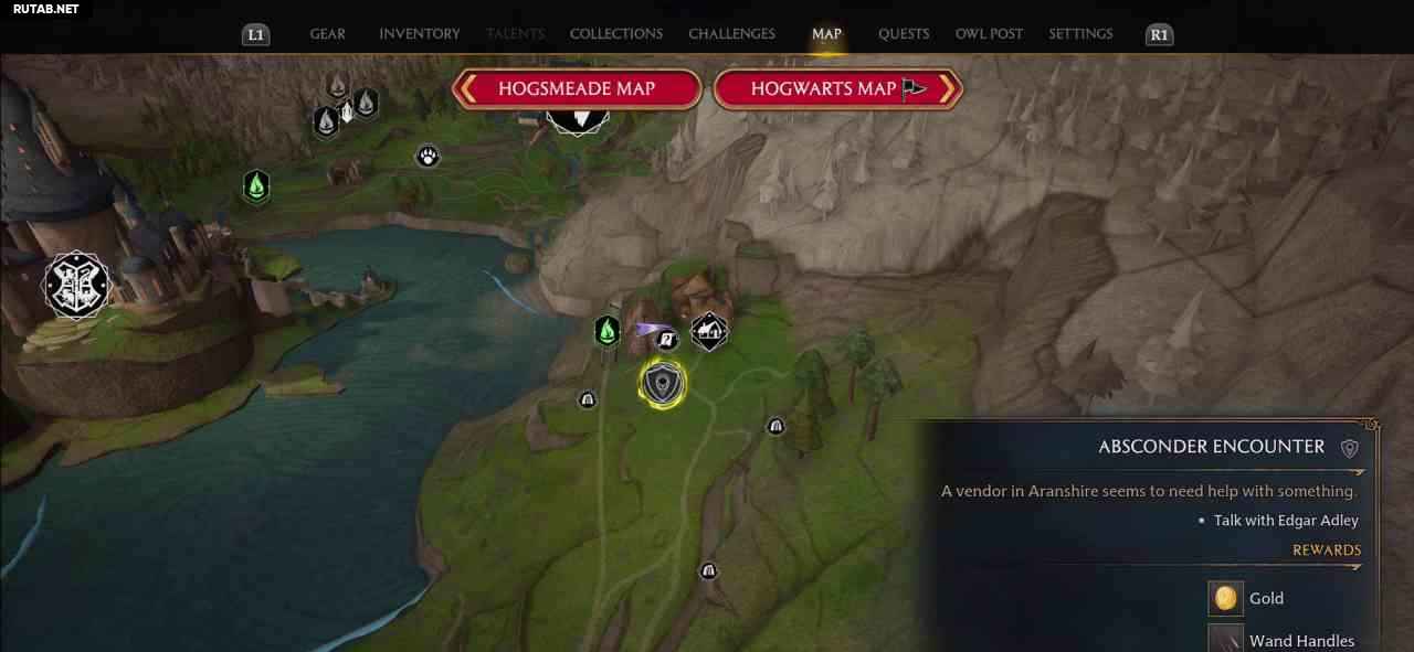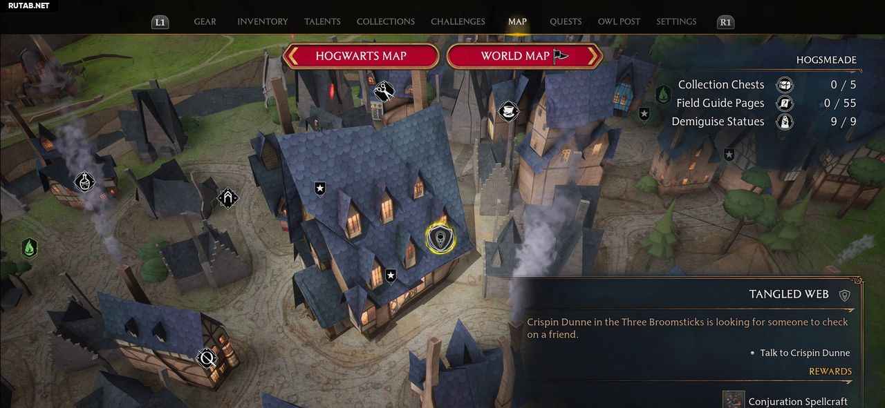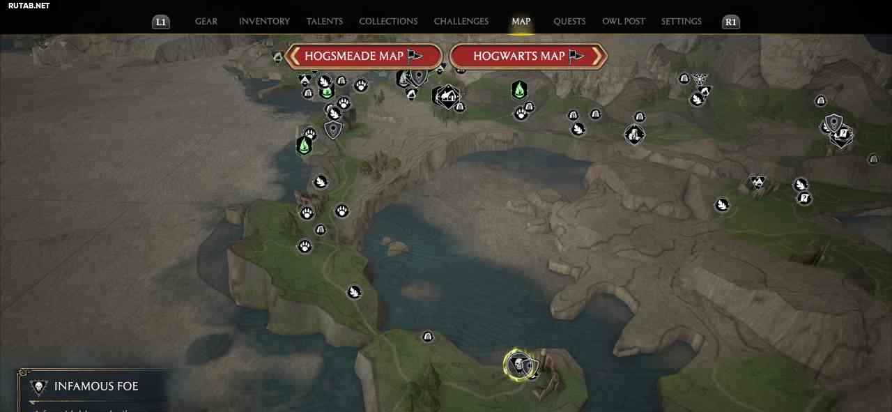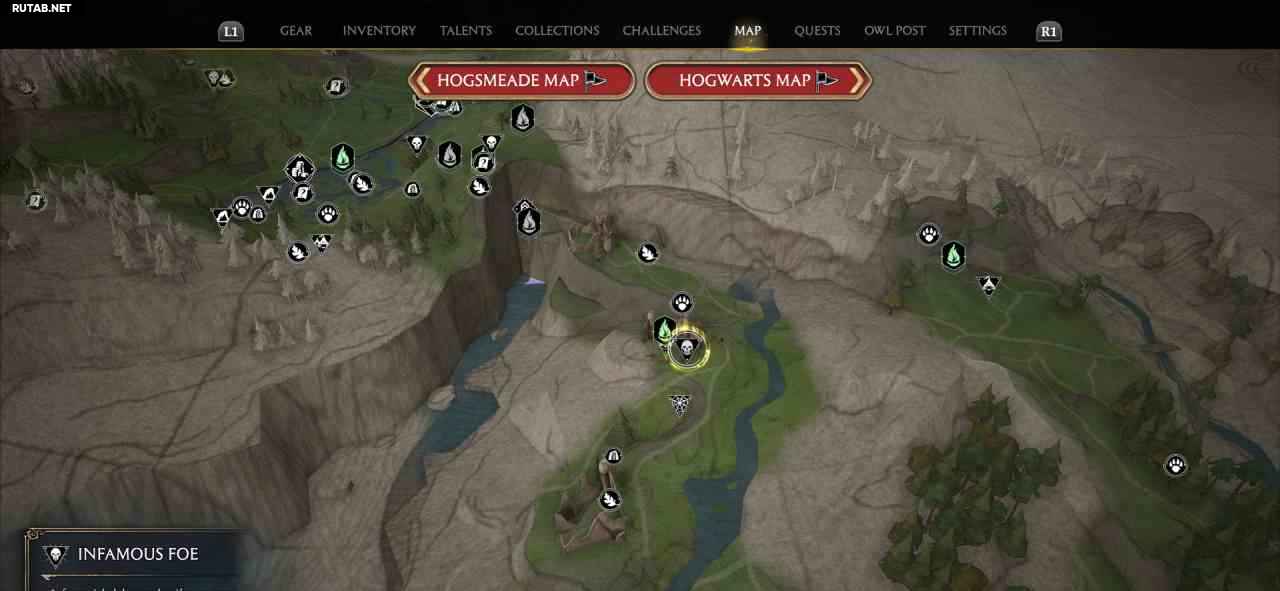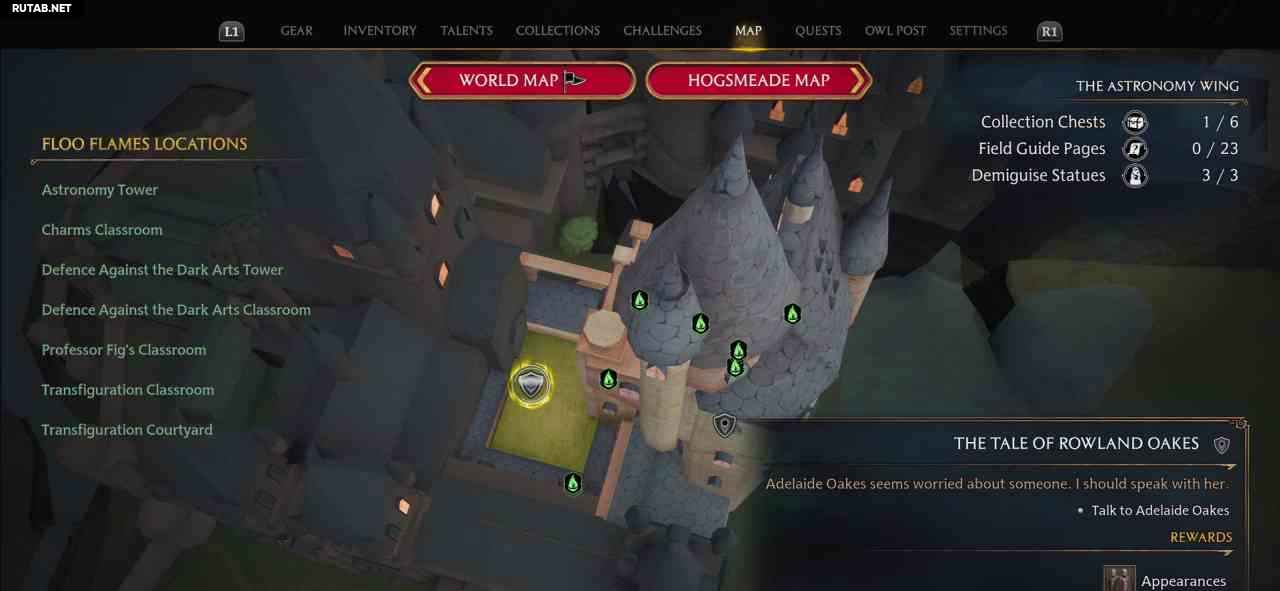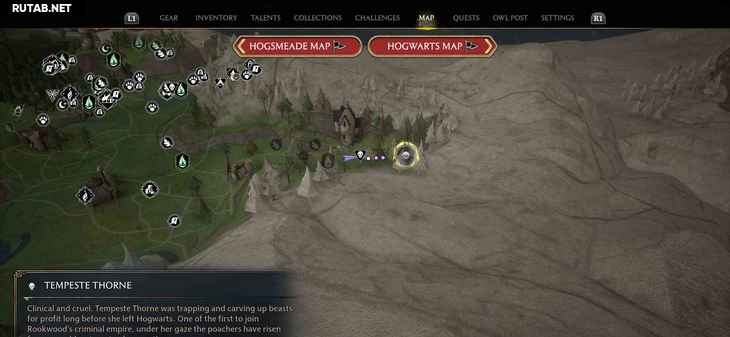 Находится в открытом мире, на востоке долины Хогсмид в замке с кучей врагов. Ворота будут закрыты, но вы можете влететь туда с помощью летающей метлы.