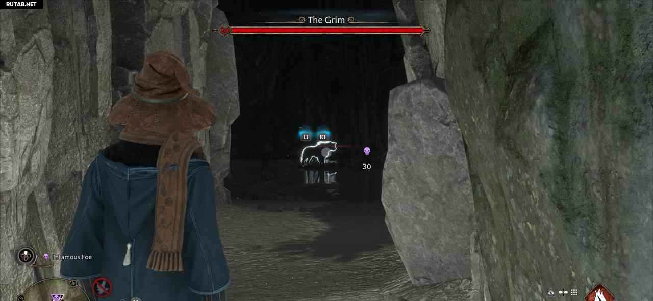 Найден в открытом мире. Два врага находятся вместе в одной пещере — Белый Волк и Грим. Рядом с рекой есть тропинка в кустах, ведущая в пещеру с этим противником. Вы можете поставить маркер на иконку печально известного врага и пойти пешком, чтобы увидеть путь на миникарте.