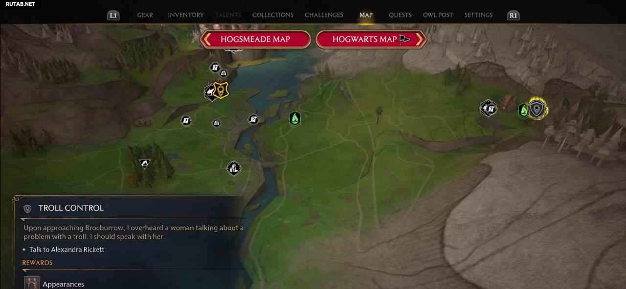 Во время выполнения побочного квеста: Тролль под контролем. Квест начинается в городке Брокберроу на северо-востоке долины Хогвартс. Вы должны победить этого врага, как часть квеста. Ниже на изображениях №1-2 показано начало квеста, на изображении №3 показан враг.