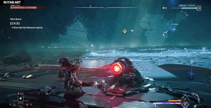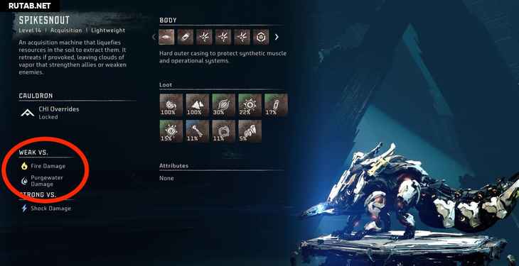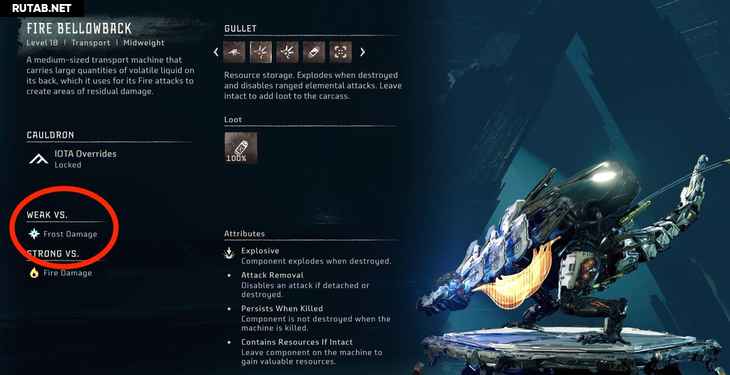 Как и ранее, сначала устраните все машины, а затем, когда это будет безопасно, отключите узел. Одна из машин здесь — клинорыл, машина нового типа. Просканируйте его, чтобы определить его слабости: огонь и вода. Эта машина, в частности, имеет множество съемных и взрывоопасных компонентов, поэтому изучите её, чтобы определить, куда лучше целиться.