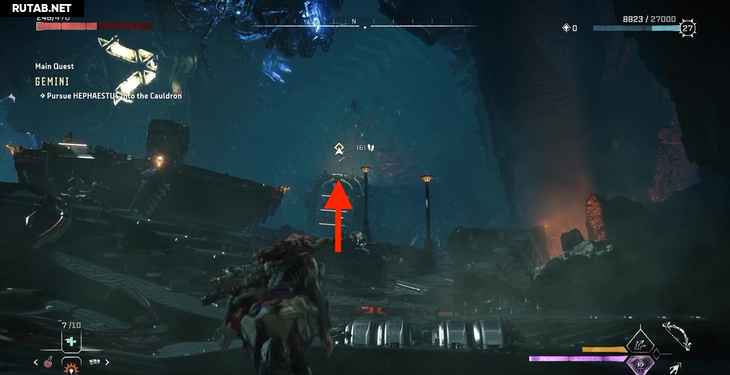 Теперь нужно углубиться в котел, чтобы найти Гефеста. Перейдите к путевой точке, чтобы продолжить движение вперед.