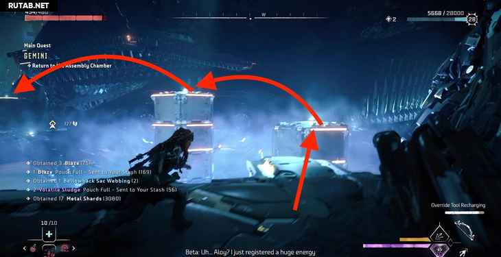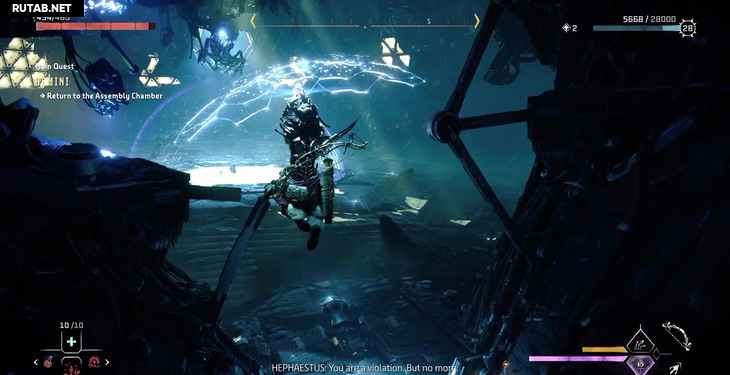 Время вернуться в сборочный цех, поскольку мы заставили Гефеста вернуться в ядро. Не забывайте использовать точки подъема и столбы и время от времени активировать щит-крыло, чтобы избежать электричества на земле, и когда вы доберетесь до сборочной камеры, будьте готовы столкнуться с множеством машин.