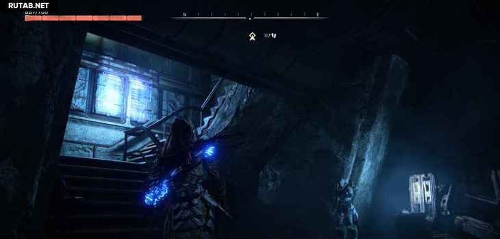Пройдите через дверь, спрыгните вниз, бегите до конца коридора, поверните налево, идите к пандусу, затем направо, идите вперед и идите к той же лестнице, что и раньше.