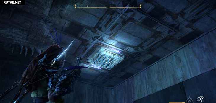 Пройдите через искрящееся отверстие в стене здесь, затем вытащите с помощью крюкохвата вентиляционный люк на потолке в этой комнате, заберитесь через него, и затем следуйте по линейному пути через вентиляционную шахту, пока не спрыгнете в другую комнату.