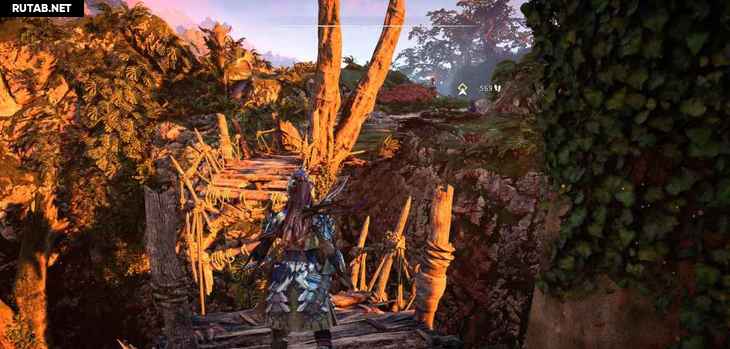 Из середины повернитесь лицом к дереву, на которое можно взобраться. Поднимитесь на вершину и прыгайте через короткий сломанный мост прямо впереди и, наконец, в долину.
