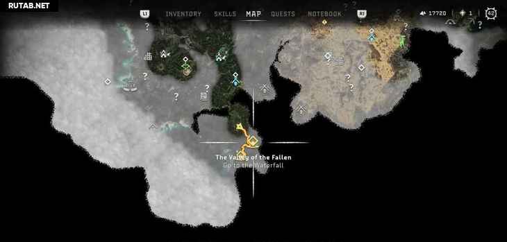 Следуйте по прямолинейному пути, ведущему в долину, пока не доберетесь до области с водопадом, по большей части это линейный путь, Элой прокомментирует, когда вы будете рядом.