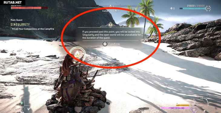Здесь игра предупреждает вас о точке невозврата, говоря вам, что если вы подтвердите, вы будете заблокированы в этой миссии, а открытый мир будет недоступен, пока вы не закончите игру. Не волнуйтесь, открытый мир по-прежнему будет доступен после прохождения сюжета. Если вы готовы продолжить, подтвердите решение.