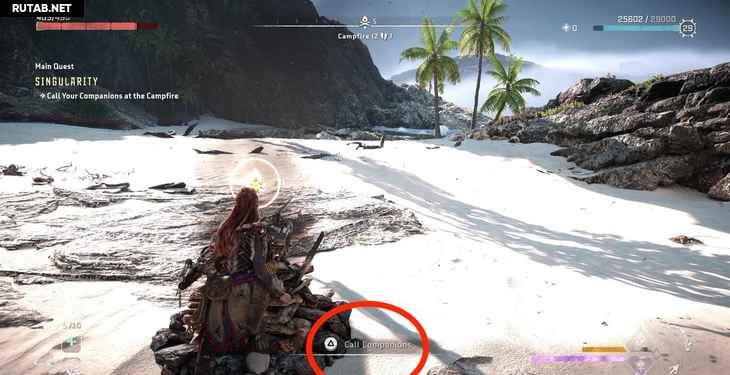 На локации подойдите к костру, чтобы вызвать своих спутников.