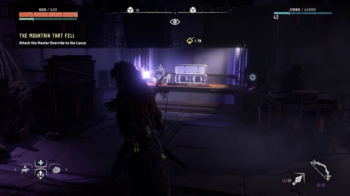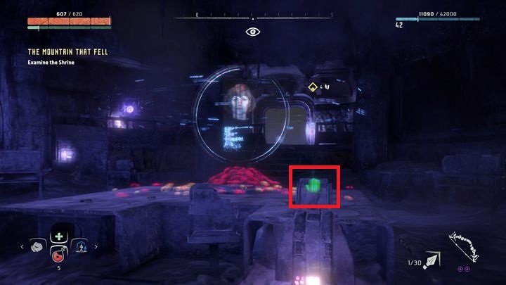 В итоге вы доберетесь до места, представленного на скриншоте. Используйте веревку, чтобы добраться до нижнего уровня. Есть два возможных варианта: можете пойти направо и следовать по маркеру или повернуть налево. Если вы пойдете налево, то быстро доберетесь до комнаты с еще одной силовой ячейкой, необходимой для завершения задания Древний арсенал.