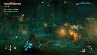 Вы быстро узнаете, что главный вход в котел заблокирован. Идите к факелу слева и спуститесь на нижние уровни руин.