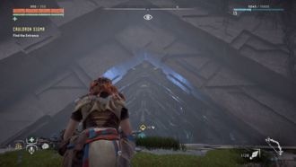 Для этого вы должны вернуться к первой турбине в комнате. На этот раз поймайте контейнер над собой, но не выпускайте его, пока Элой не приблизится к следующему барьеру. Когда вы приблизитесь к нему, отпустите контейнер и используйте небольшие лестницы, чтобы подняться наверх. Здесь турбина расположена горизонтально, и по умолчанию движется против часовой стрелки. Стреляйте в синюю часть и хватайтесь за ручку. Сделав это, вы попадете на другую сторону. Это позволит вам продолжить ваше исследование.