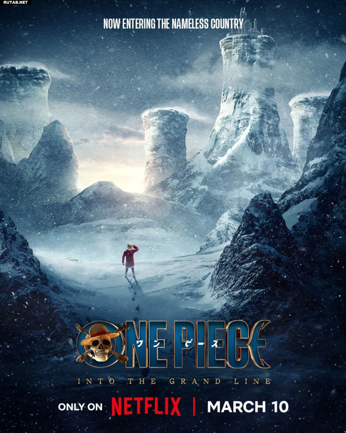 Согласно сюжету, команда Соломенной шляпы покинет Вест Блю и отправится в опасные воды Гранд Лайн. На постере изображён холодный пейзаж острова Драм — место, где родился северный олень Чоппер.