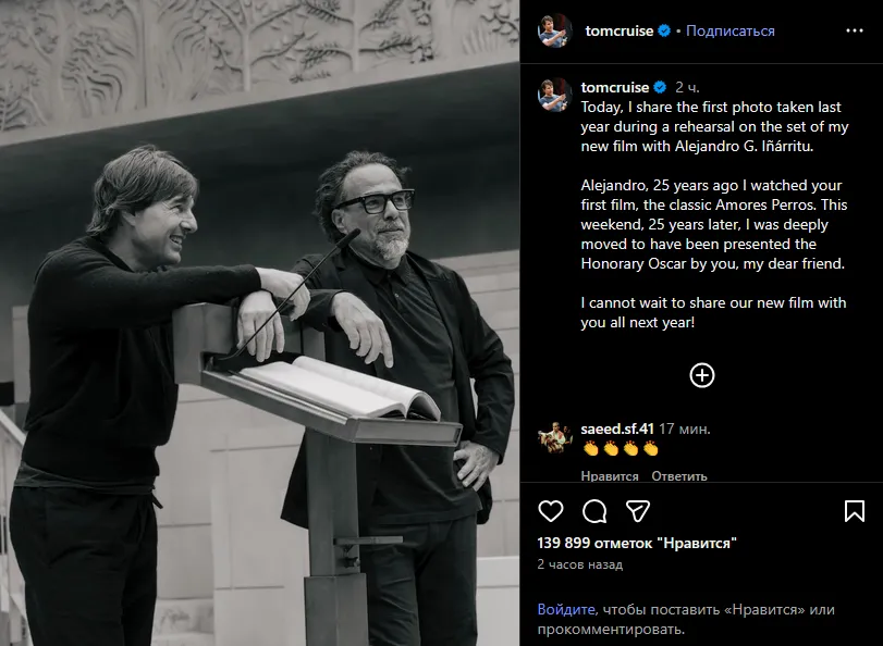 Том Круз показал первое фото со съемок нового фильма с Алехандро Иньярриту