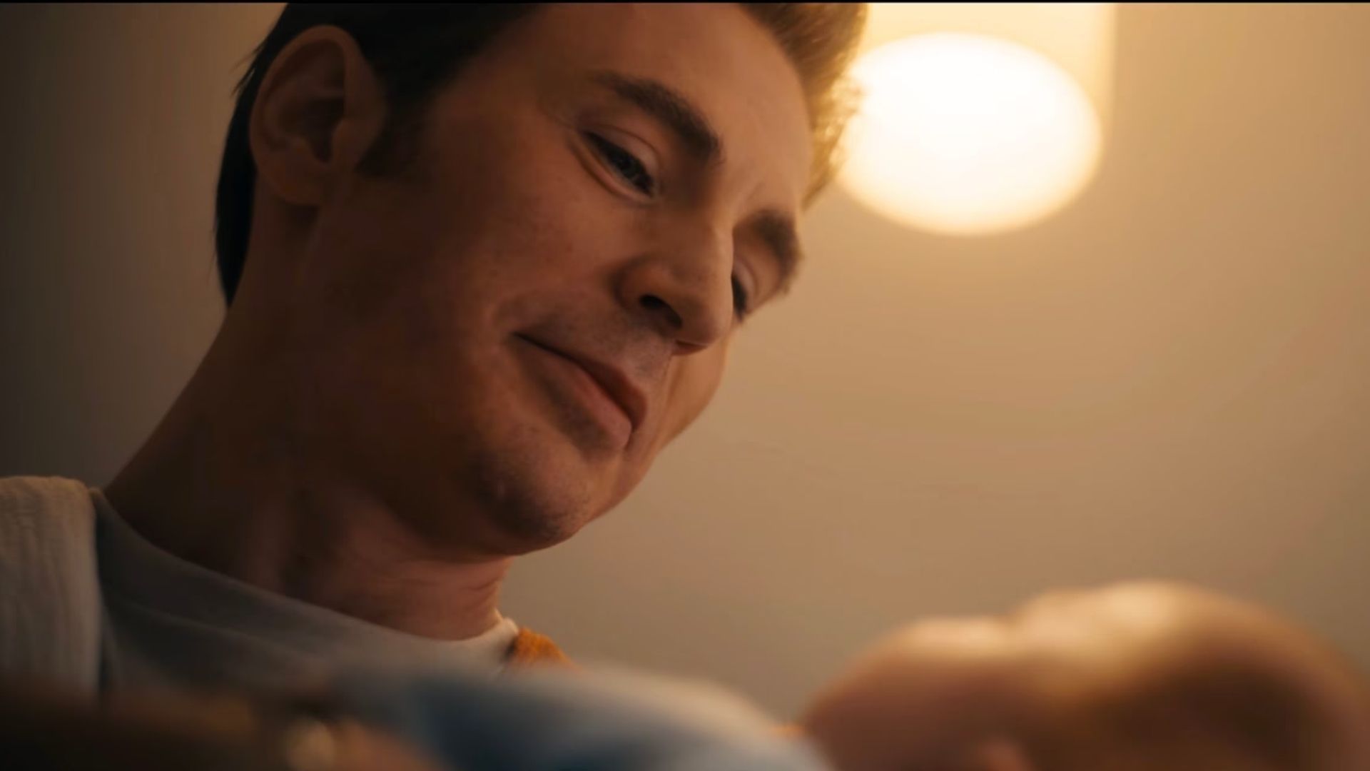 В ролике персонаж Эванса, Стив Роджерс / Капитан Америка, показан в том прошлом, в которое он вернулся в финале «Мстителей: Финал», чтобы воссоединиться со своей возлюбленной Пегги Картер. Трейлер сдержан: вместо того чтобы показывать Стива в бою, герой едет на мотоцикле, убирает костюм на хранение и держит на руках своего младенца.