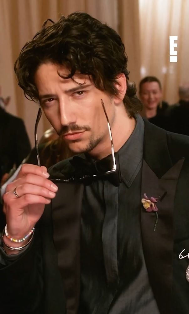На красной дорожке телеканал E! (через @MENin4K в X) опубликовал видео, на котором актёр стоит спиной к камере, затем поворачивается и медленно снимает солнцезащитные очки, демонстрируя этот взгляд.