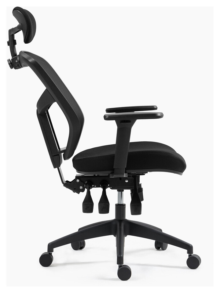 Кресло предлагает три уровня регулировки высоты спинки и полностью настраиваемый подголовник, который можно перемещать по высоте, углу и глубине. Подлокотники также регулируются и могут быть сняты при необходимости. Пользователи могут выбрать один из двух вариантов спинки: сетчатую для максимальной воздухопроницаемости или мягкую сетку с дополнительной амортизацией.