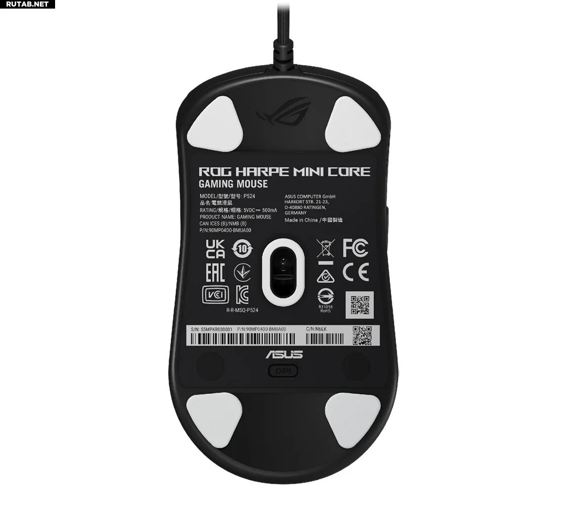 Внутри ROG Harpe Mini Core установлен сенсор с разрешением 12 000 dpi и съемные переключатели ROG Micro Switch II для основных кнопок. Электроника обеспечивает скорость отслеживания 300 IPS и ускорение до 35G — эти характеристики заметно отличаются от 42 000 dpi и 750 IPS у модели Harpe Ace Mini. Логотип ROG на верхней панели подсвечивается красным светом, а колесо прокрутки имеет RGB-подсветку. Переключатель dpi расположен под корпусом мыши. Устройство подключается через интерфейс USB 2.0, а кабель, хотя и оплетенный, не является съемным. Компания не раскрыла информацию о цене новинки.