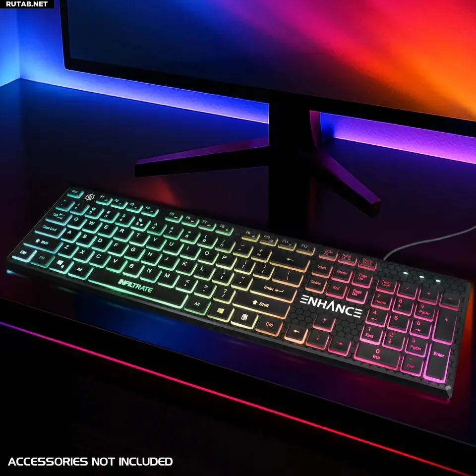 Замыкает коллекцию игровая клавиатура Infiltrate 3 с гибридными механическими переключателями в низкопрофильном корпусе. Клавиши обеспечивают тактильную отдачу при нажатии. Клавиатура поддерживает технологию anti-ghosting, 26-клавишный антифантом, блокировку Windows, замену стрелок на WASD и 12 мультимедийных сочетаний. Доступно 9 режимов динамической подсветки и 7 статических цветов.