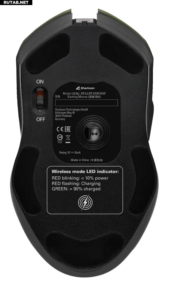 Помимо эстетической функции, RGB-подсветка логотипа на верхней панели мыши информирует о текущем уровне заряда аккумулятора.