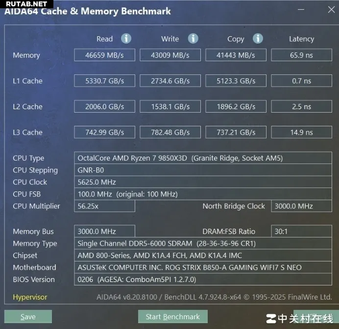 Мы провели тестирование и сравнили производительность одной планки 16 ГБ DDR5-6000 и двух планок по 16 ГБ DDR5-6000. Вот результаты. Для начала — базовые показатели двухканального режима.