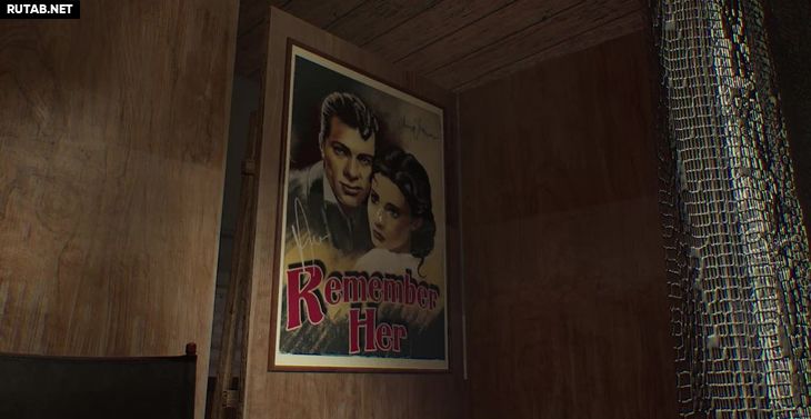 Киноплакат № 1 (помни её): после того, как верхний стул встал на сцену, перейдите ко второй стадии. Поднимитесь по небольшой лестнице. Плакат слева от вас.