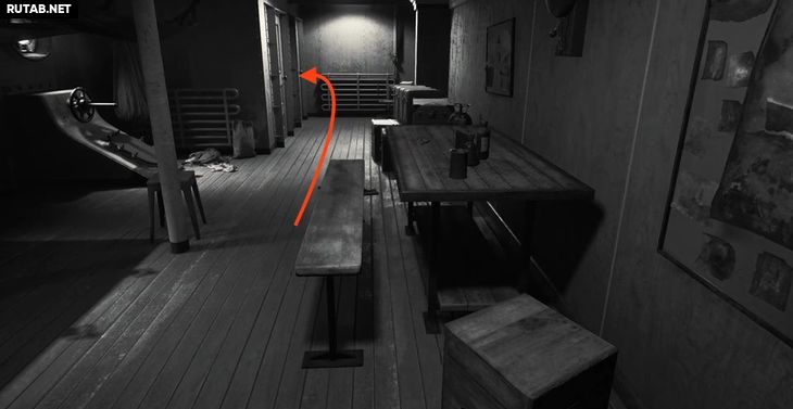Загадочный предмет № 1 (можно получить только во время игры NG +): после того, как вы заперлись в одной из парных, чтобы не быть пойманным монстром, подождите, пока монстр уйдет, а затем выйдите обратно. В то время как вы должны войти в комнату справа с проектором, сначала сделайте краткий обход, чтобы собрать первый Таинственный предмет. Из парилки идите прямо, как показано на скриншоте ниже. В новой области нажмите кнопку и быстро бегите и приседайте под трубами, чтобы пройти финишную черту до истечения времени.Вы найдете коллекционное на столе.