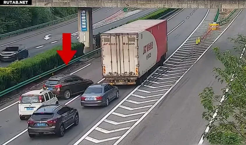 Как сообщает управление дорожной полиции Китая, 1 октября на скоростной трассе Хуву в провинции Хубэй женщина по фамилии Юнь пропустила момент для перестроения к съезду. Вместо того чтобы продолжить движение, она резко затормозила и остановилась на скоростной полосе.