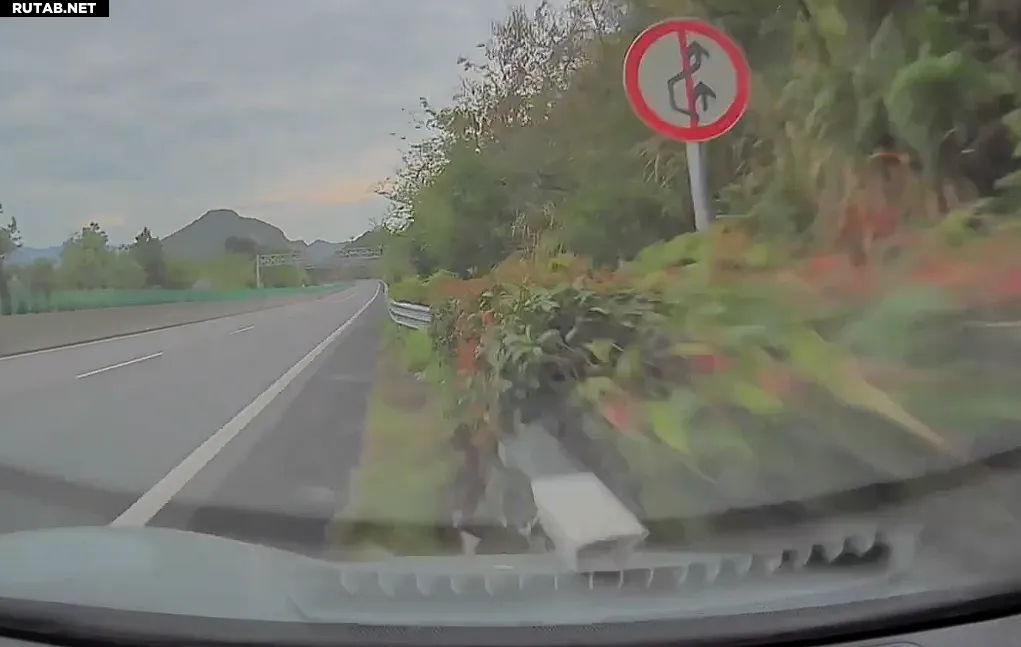 Водитель по фамилии Чэнь двигался по левой полосе, когда его автомобиль внезапно сместился вправо, врезался в отбойник, вылетел в придорожные насаждения и перевернулся. Транспортное средство получило серьезные повреждения, но сам водитель не пострадал благодаря пристегнутому ремню безопасности.