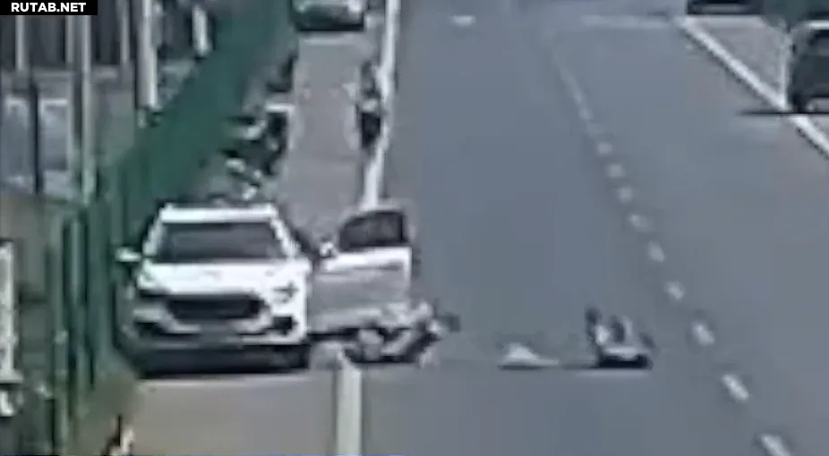 Спустя две минуты по этой полосе в направлении с юга на север двигался электрический скутер. В тот момент, когда он поравнялся с автомобилем, водитель машины резко открыл свою дверь, сбив скутер. Водитель скутера упал на проезжую часть.