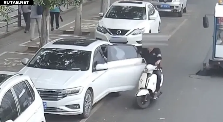 Инцидент произошел 21 мая этого года в районе Шуньи. На видеозаписи с камер наблюдения видно, как белый автомобиль съехал с проезжей части и остановился на полосе, предназначенной для движения велосипедов и мопедов.