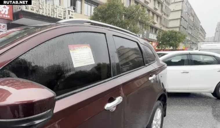 В Китае на лобовое стекло приклеили штраф стикерами, которые невозможно отодрать