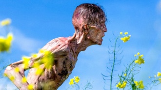 Далее трейлер (смотрите выше) демонстрирует вид изолированного острова, пугающее чучело со стрелой в «голове», ряд мемориальных крестов и молодого человека, управляющего повозкой с лошадью.