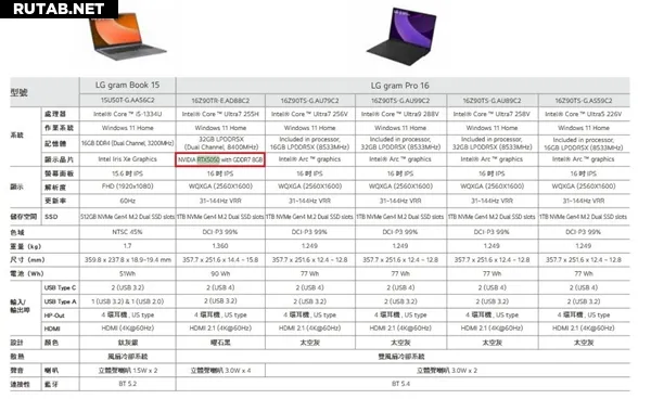 LG Gram Pro 16 с процессором Intel Core Ultra 7 255H и видеокартой RTX 5050 получит 8 ГБ GDDR7. В технических характеристиках устройства явно указан тип памяти.