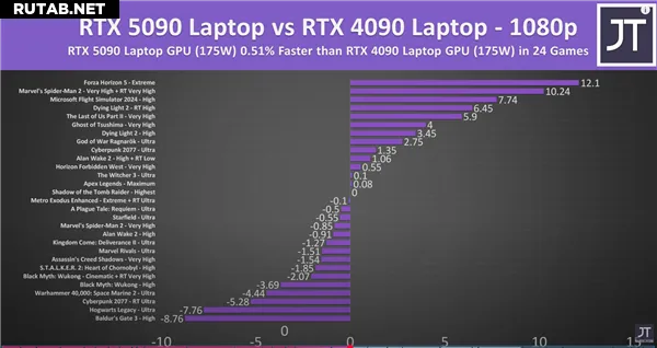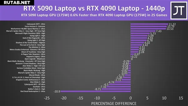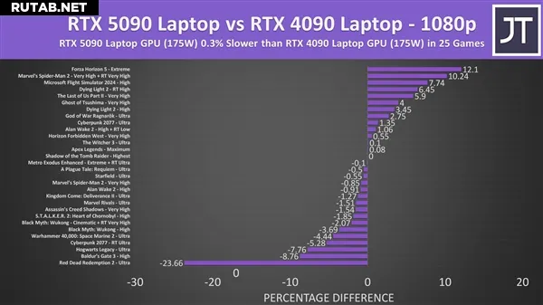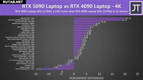 RTX 5090 для ноутбуков оказалась лишь на 3% быстрее RTX 4090 в 4K