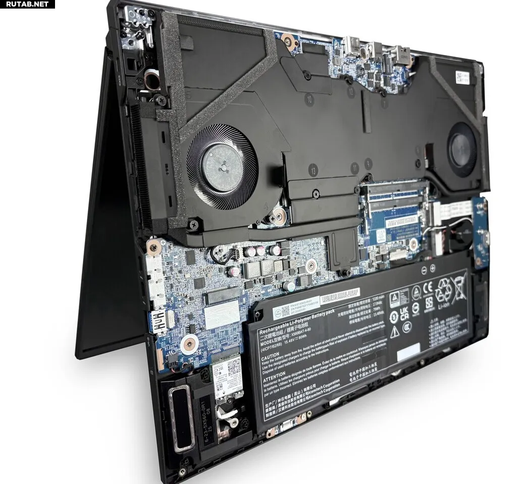 Ноутбук предлагает расширенные возможности подключения, включая 2 порта Thunderbolt 4, HDMI 2.0 и RJ-45 (2.5GbE). Система охлаждения включает паровую камеру для процессора и видеокарты.