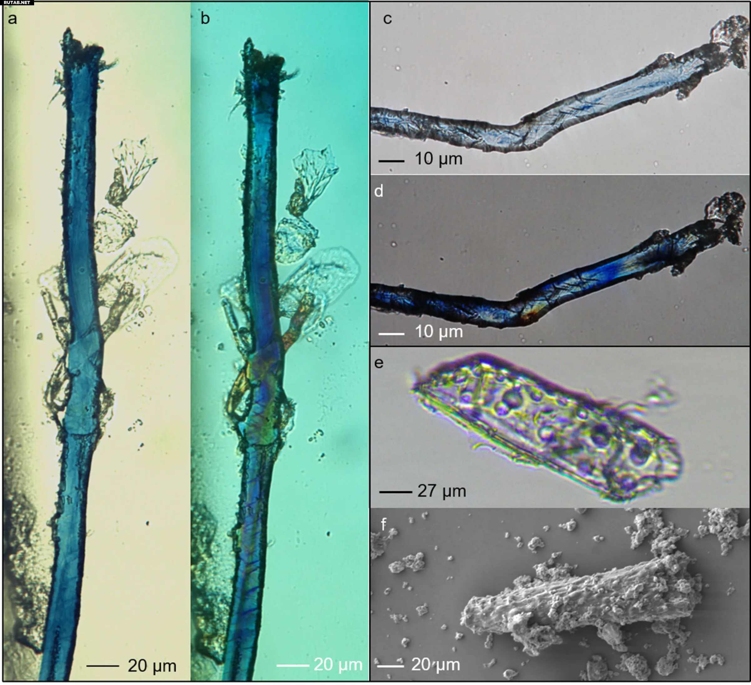 Археологические синие микрофрагменты, извлечённые из внутренней части формы. Автор: PLOS One (2025). DOI: 10.1371/journal.pone.0321262