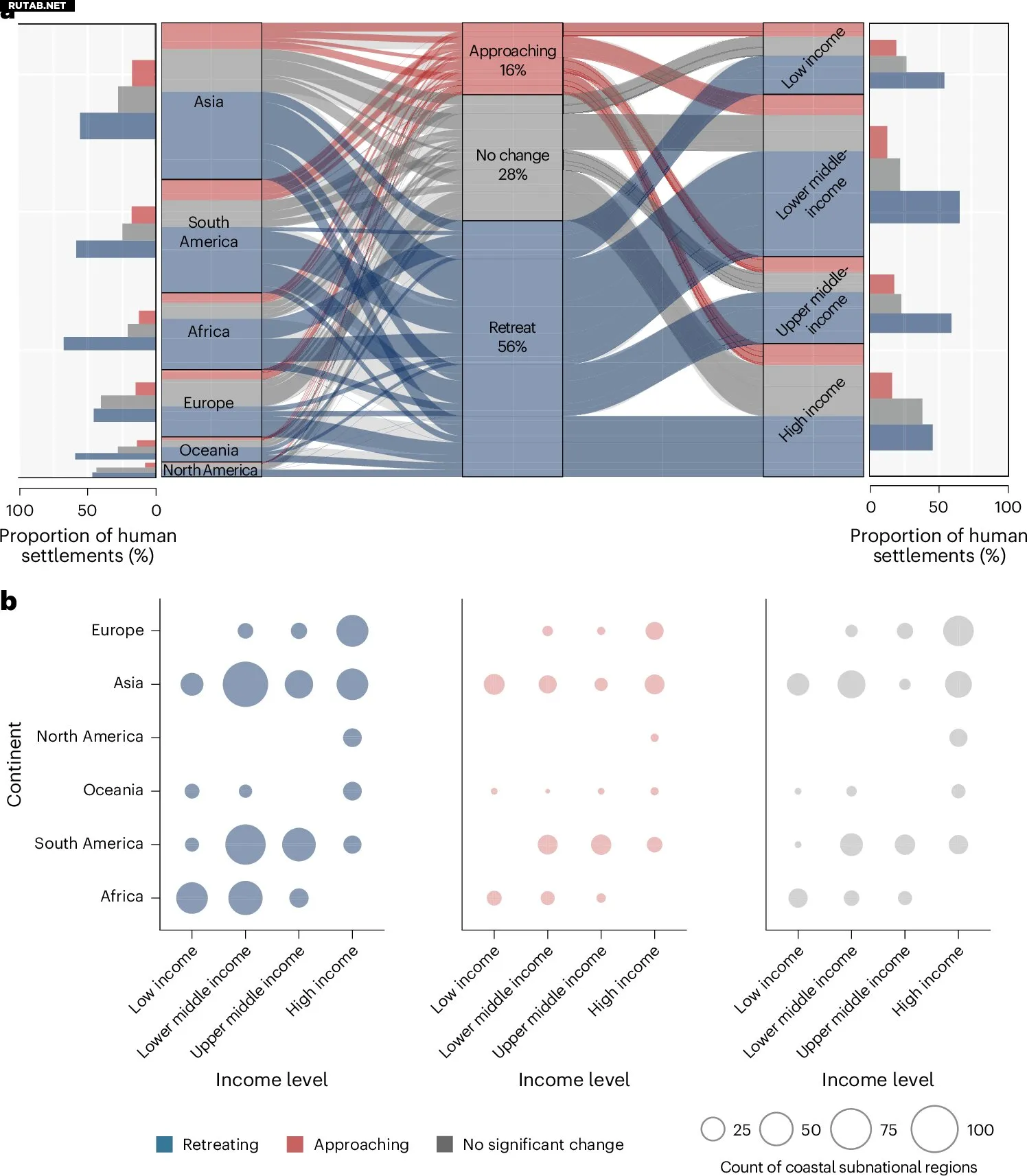 Различия в моделях перемещения прибрежных поселений на разных континентах и среди разных доходных групп. Автор: Nature Climate Change (2025). DOI: 10.1038/s41558-025-02435-6