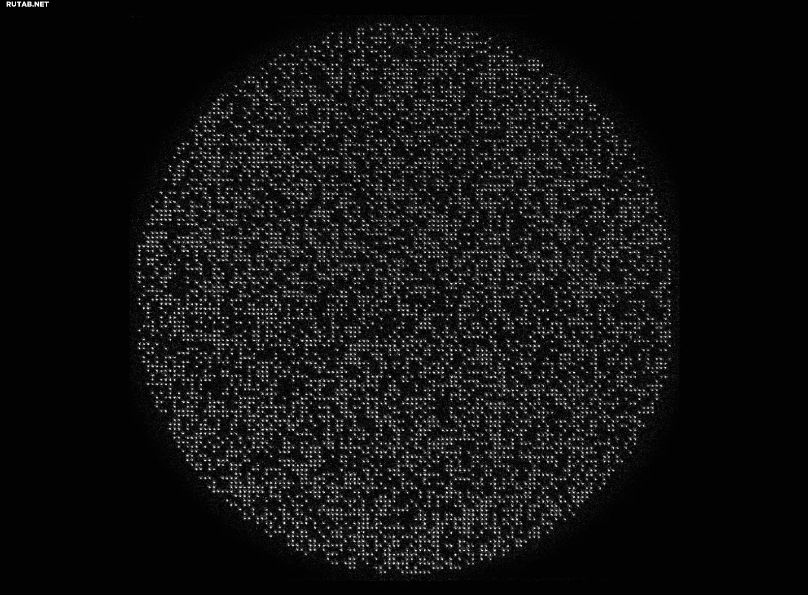 На изображении показаны 6100 атомов цезия, удерживаемых лазерными лучами, называемыми оптическими пинцетами. Ширина круга составляет около одного миллиметра. Автор: Caltech/Endres Lab