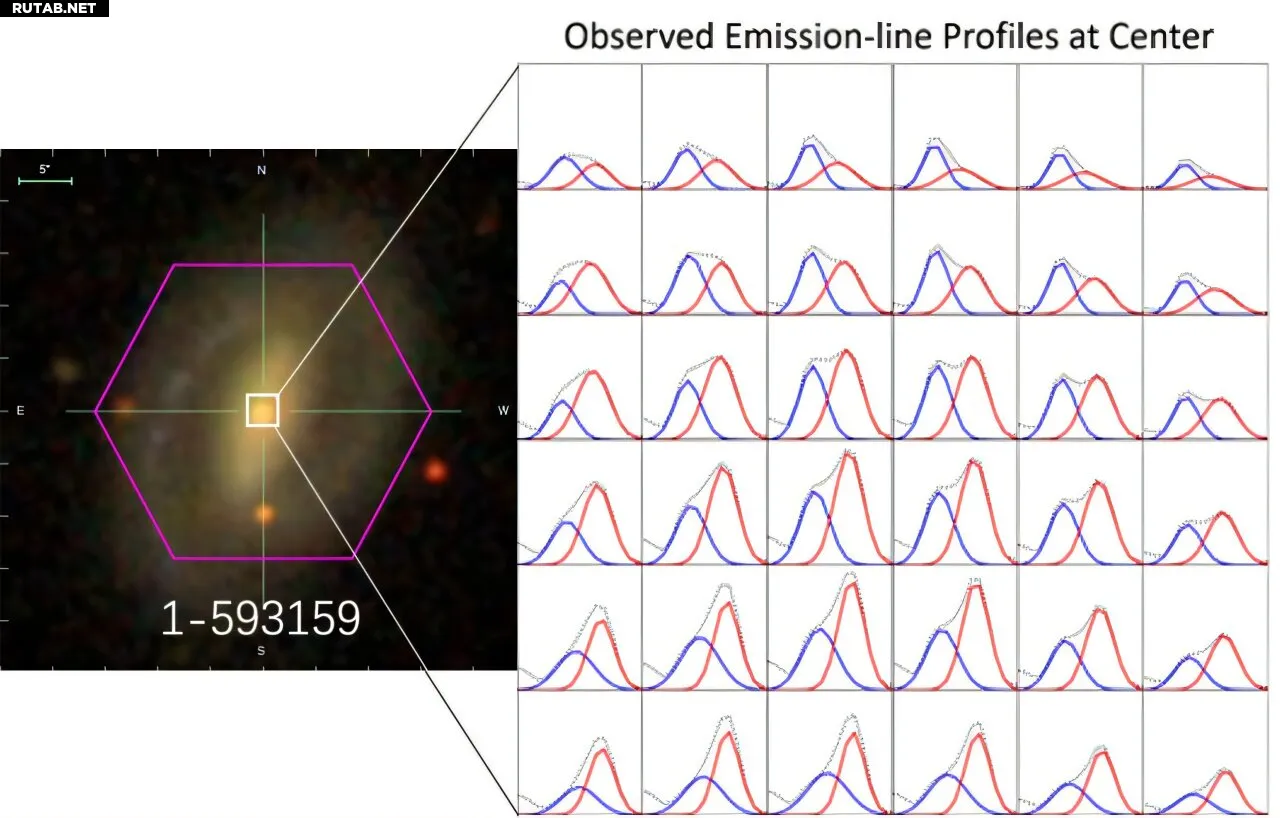 Используя данные проекта MaNGA Слоуновского цифрового обзора неба, ученые выяснили, что эти спектральные особенности связаны не только с двойными черными дырами, но также могут возникать из-за быстро вращающихся газовых дисков и выбросов активных галактических ядер (AGN).