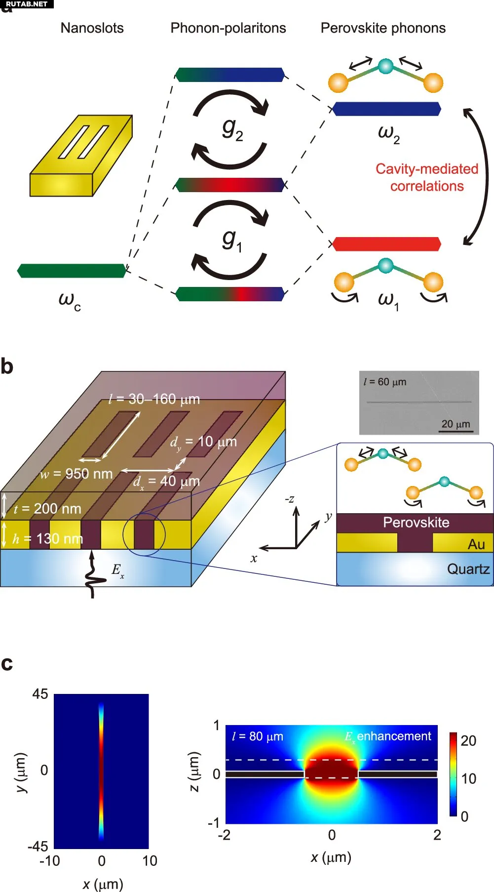 «Мы изготовили массивы наноразмерных щелей с семью немного разными длинами, чтобы настроить единственный терагерцовый резонанс, и осадили поверх них тонкие плёнки перовскита», — пояснила Ким. «Проектирование геометрии щели позволило нам формировать взаимодействие между светом и фононами перовскита без использования мощных лазерных импульсов или громоздких кристаллов».