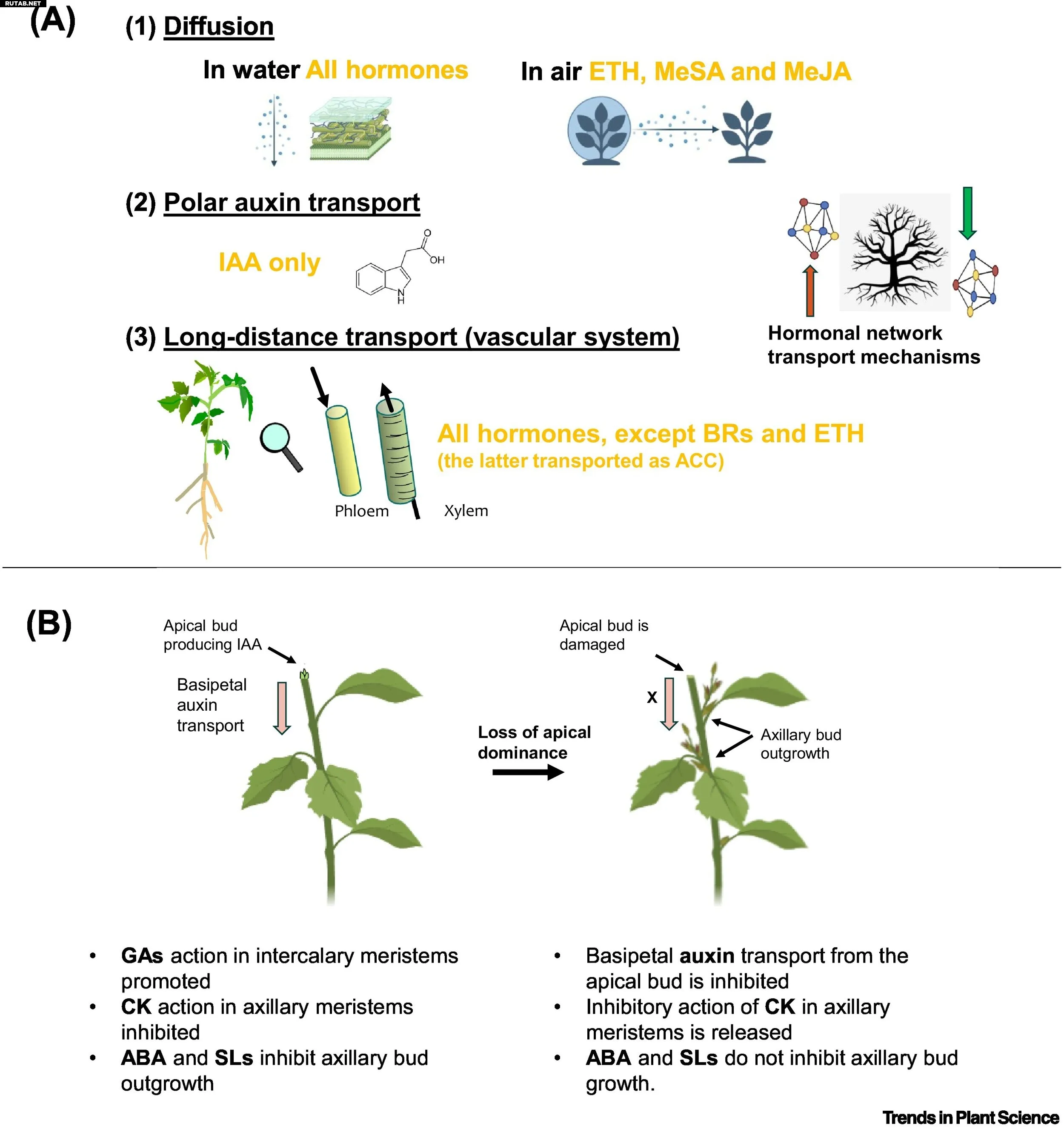 Интересно, что 8 из 10 групп гормонов присутствовали у растений еще до появления сосудистых видов. Цитокинины, некоторые пептидные гормоны и этилен уже были у водорослей, а ауксины, ABA, салицилаты, жасмонаты и строголактоны — у мхов.
